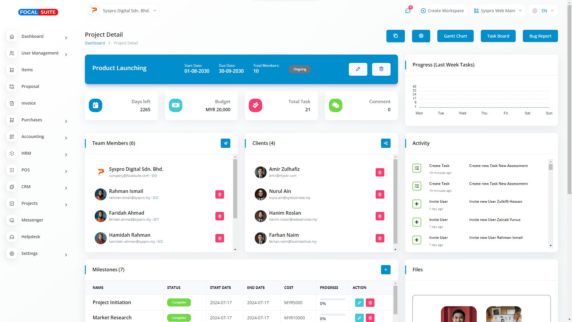 Attach cost and summary to milestones and change the status through the drop-down menu. Get a tab on recent activities of a project and also a graph about progress. Along with that, you can check your tasks’ details under project details with the help of the Gantt Chart.